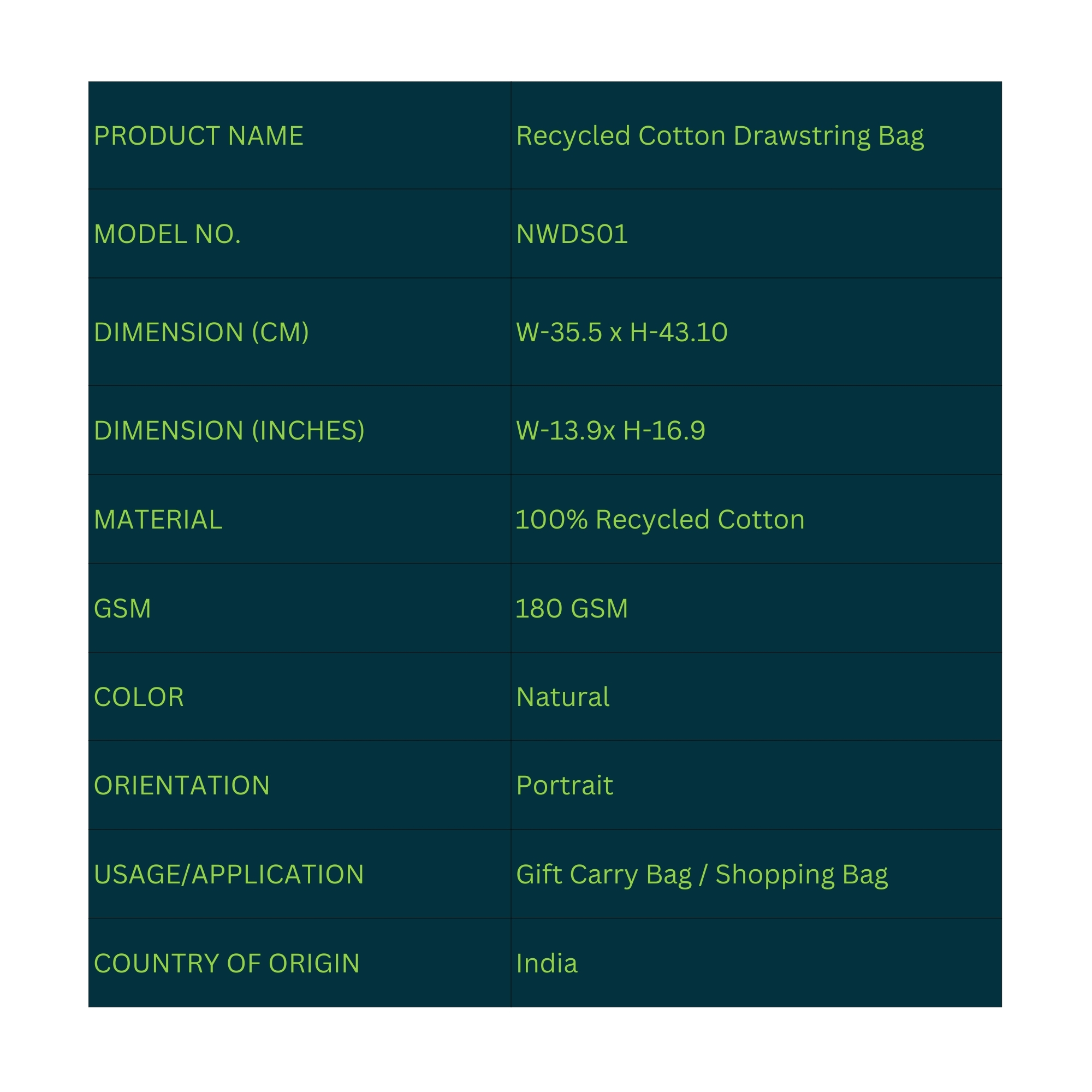 PRODUCT NAME Recycled Cotton Drawstring Bag